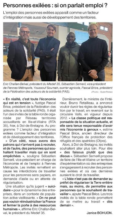 Le Réseau Territoires Accueillants veut promouvoir avec l’appui de Rennes Métropole et des représentants des entreprises une expérimentation sur une autre façon d’accorder les autorisations de travail aux exilés, avec des délais raisonnables de réponse pour les entreprises et les futurs salariés.